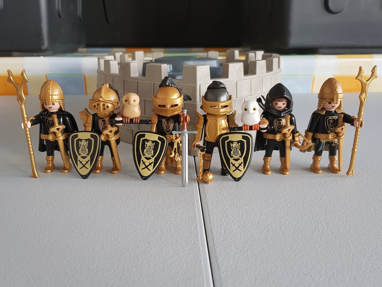 Este es uno de mis proyectos iniciados en 2017 y que este 2018 proyectaré con fuerza. Se trata de una orden casi inexistente dentro del mundo de los caballeros de playmobil y la única referencia que tengo al respecto de ésta orden es un escudo que se puede encontrar en el set de calendario de Adviento de 2010 con número de referencia 4163. En dicho escudo se puede observar un búho postrado sobre una base y debajo de él un par de espadas moriscas entrecruzadas. el fondo es negro con los detalles descritos en color oro.
